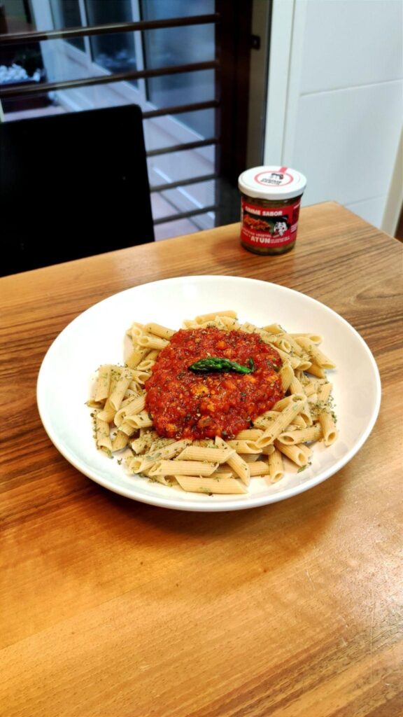 ¡Y listo! Ahora puedes disfrutar de unos deliciosos macarrones integrales con una rica salsa boloñesa sabor atún. Es un plato sencillo, saludable y perfecto para una comida nutritiva alta en proteínas.