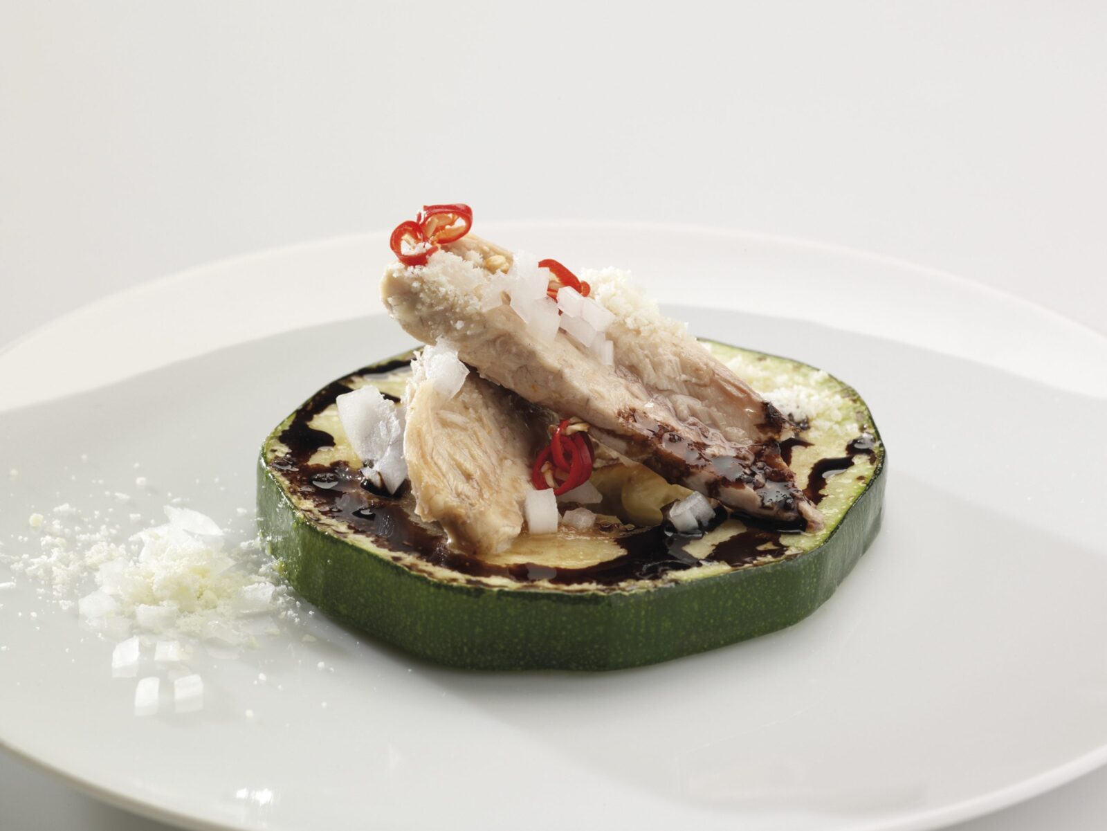 INGREDIENTES 1 lata de bonito en aceite de oliva Calabacín Cebolla Pimiento rojo Queso rallado Reducción de vinagre de Módena ELABORACIÓN Marcar con cuidado el calabacín a la plancha, retirar y colocar encima el bonito, cubierto con un poco de cebolla y pimiento rojo crudos, finamente picados. Para terminar, espolvoreamos todo con queso rallado y…