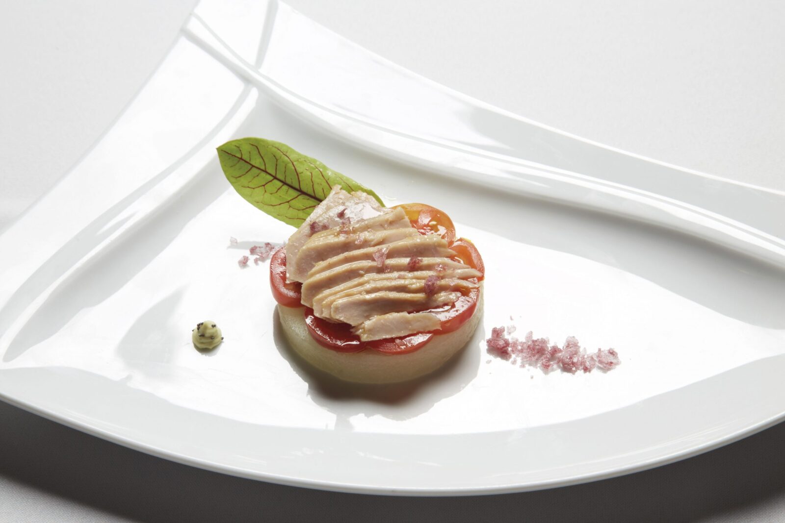 Canelón de bonito con crema suave de queso y cebolleta